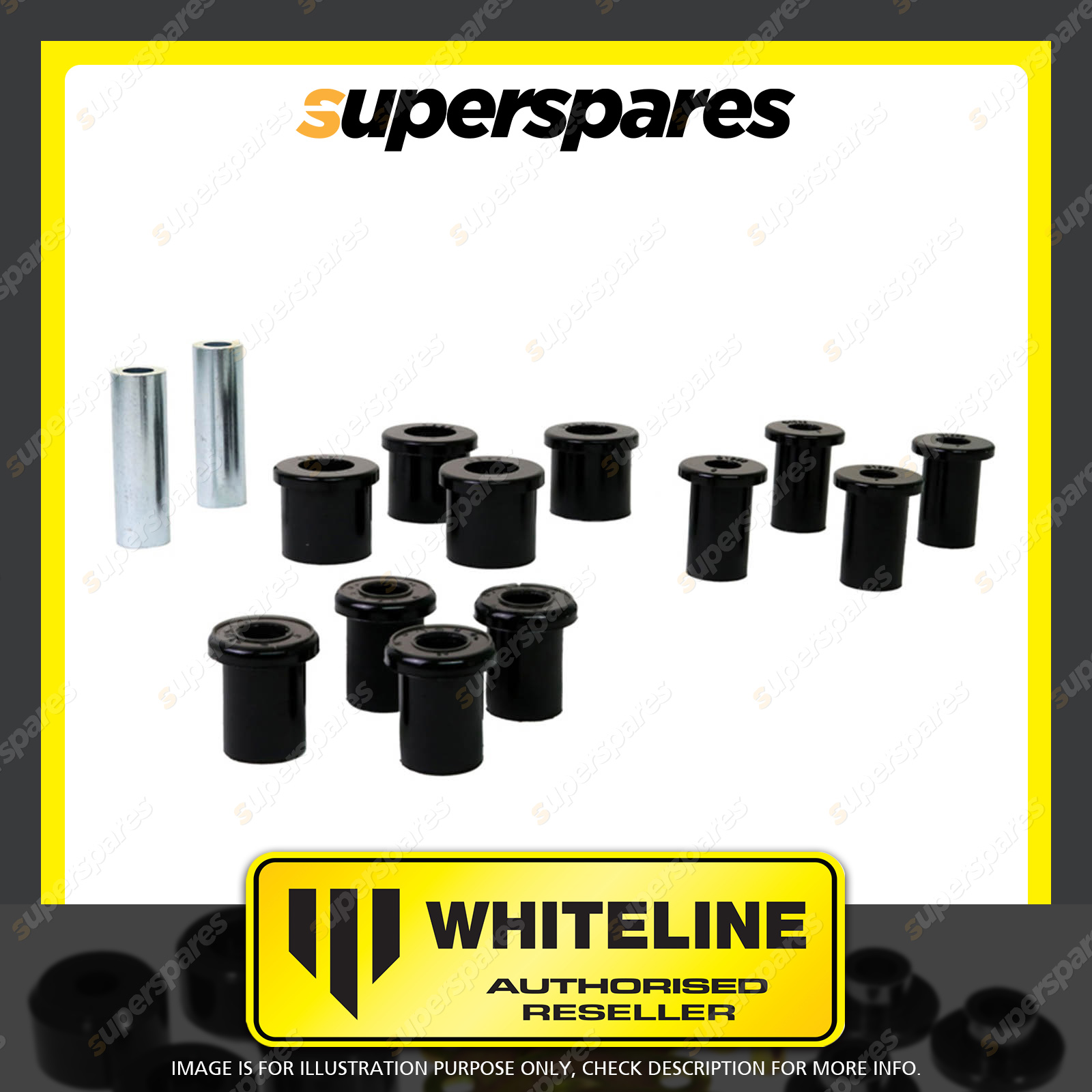 | Contents : Whiteline Rear Spring kit Warranty : 3 Year / 60,000Kms Kit Contents : 12 Bushings, 2 Tubes, Grease |