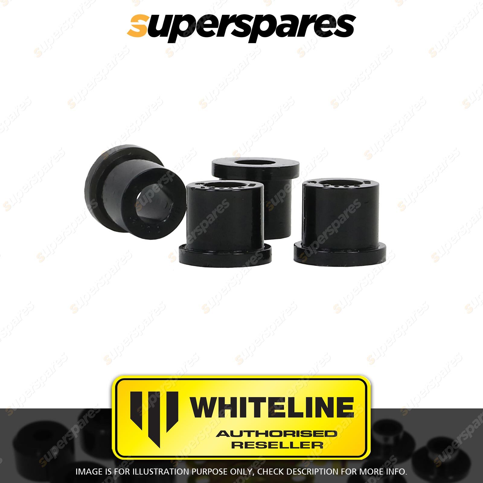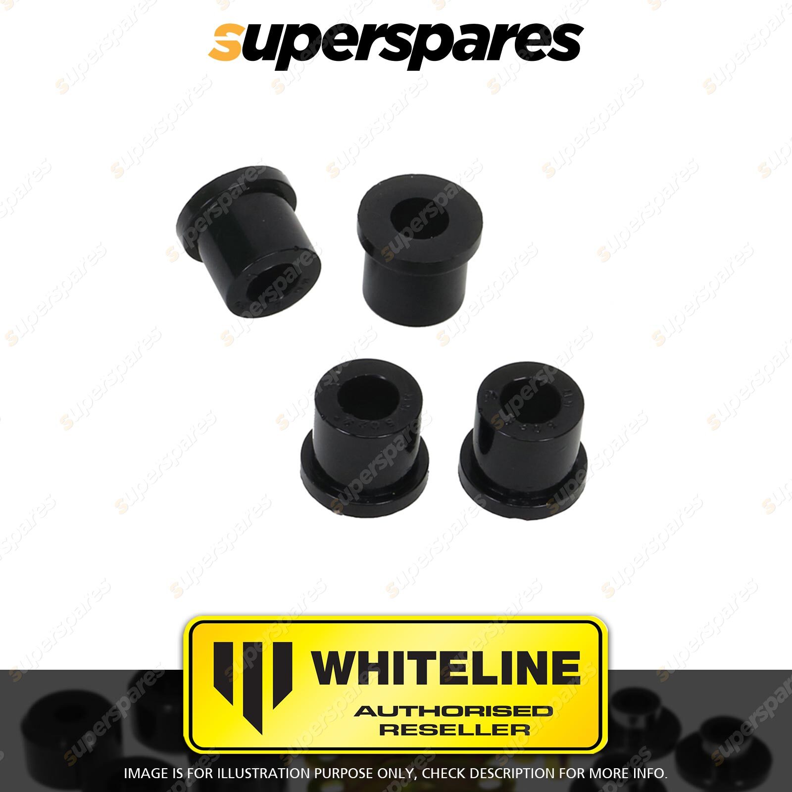 | Contents : Whiteline Rear Spring - shackle bushing Warranty : 3 Year / 60,000Kms Kit Contents : 4 Bushings, Grease |