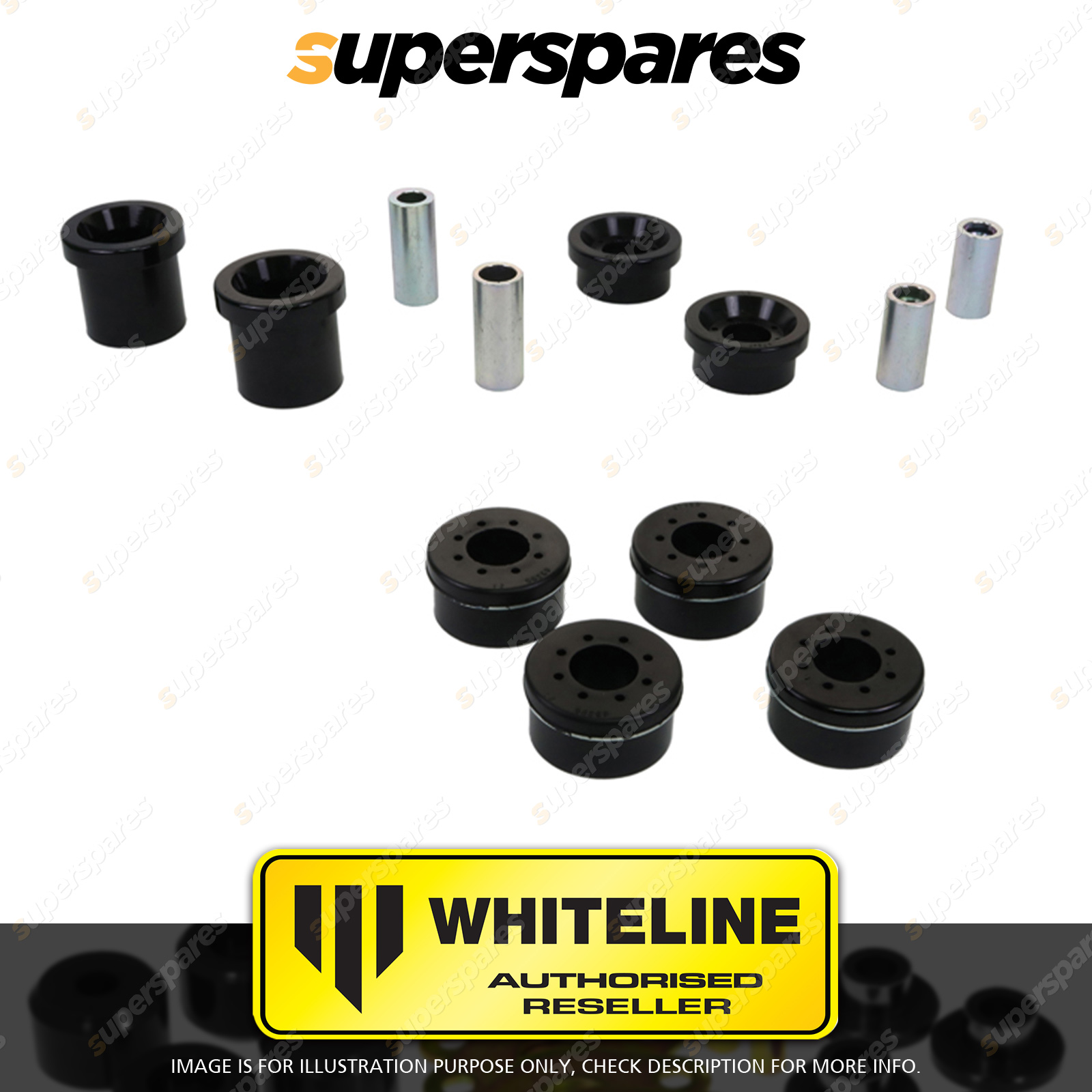| Contents : Whiteline Rear Subframe - mount bushing Warranty : 3 Year / 60,000Kms Kit Contents : 8 Bushings, 4 Tubes, Install Guide, Grease |