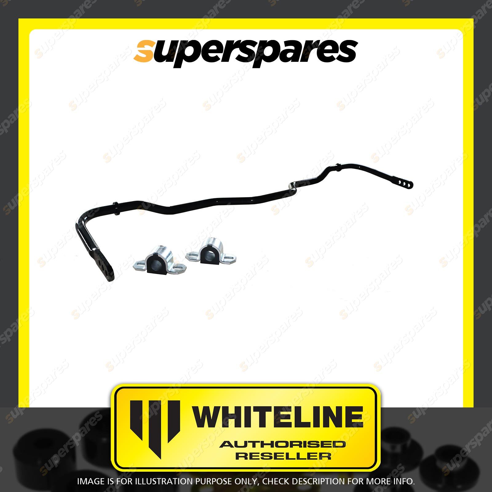Contents : Whiteline Sway Bar - 24mm 3 Point Adjustable Position : Rear Warranty : 3 Year / 60,000KMS Kit Contents : 1 Sway Bar, 2 Bushings, 2 Saddles, Grease |