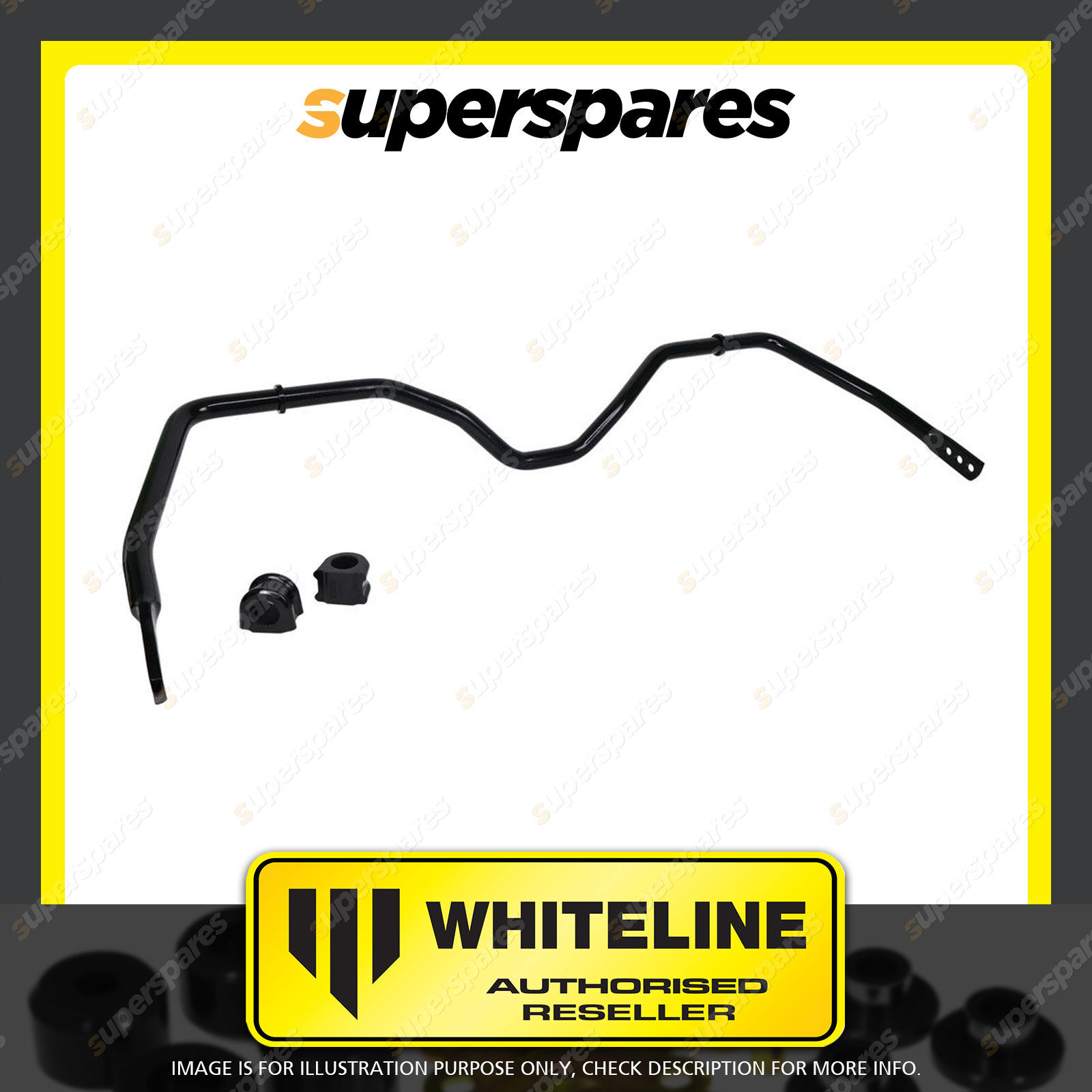 | Contents : Whiteline Rear Sway Bar - 30mm 3 Point Adjustable Warranty : Lifetime Kit Contents : 1 Sway Bar, 2 Bushings |