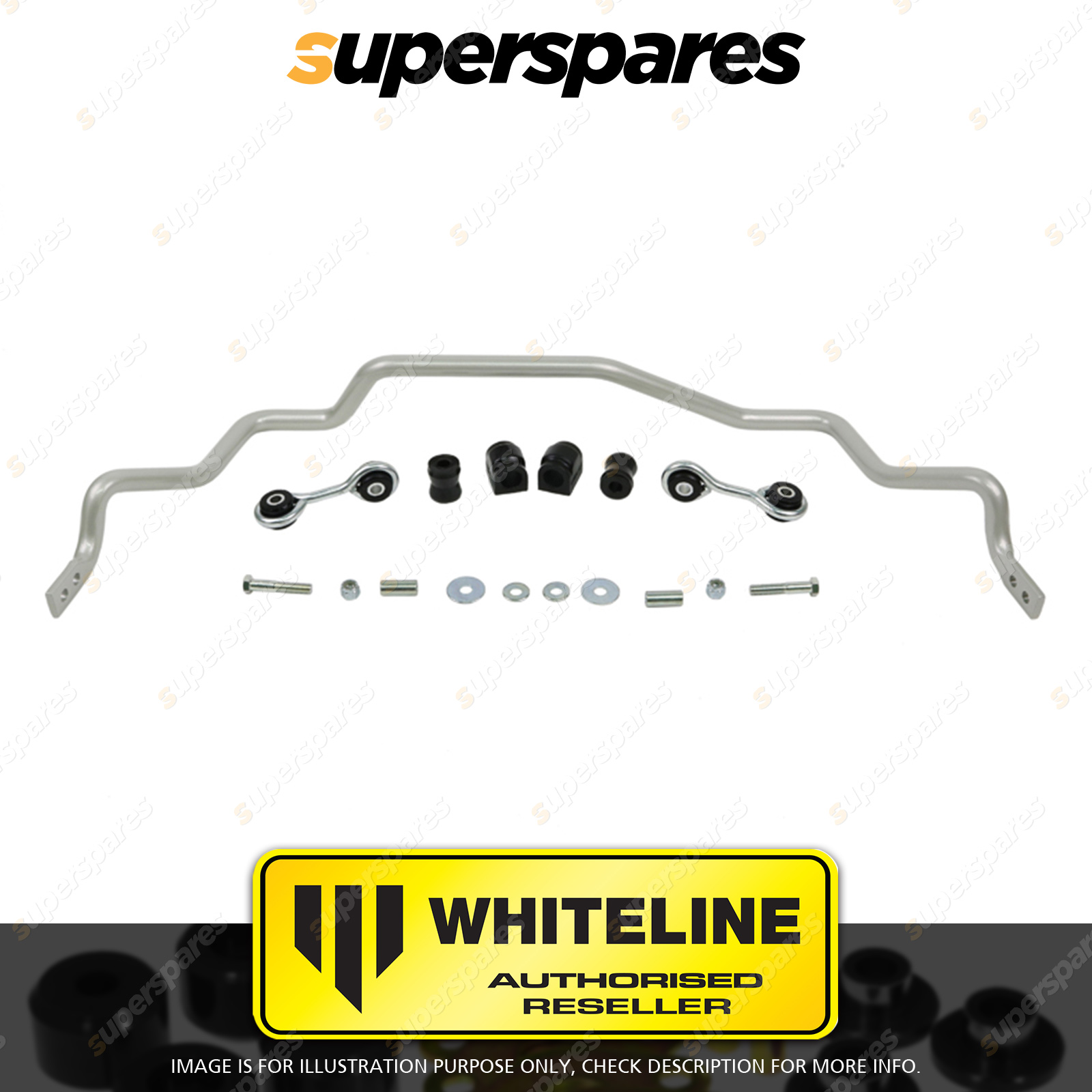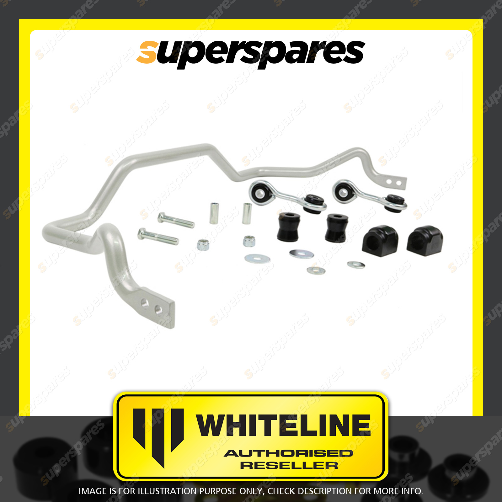 | Contents : Whiteline Rear Sway bar Warranty : 3 Year / 60,000Kms Kit Contents : 1 Sway Bar, 2 Links, 4 Bushings, 2 Tubes, 2 Bolts, 4 Washers, 2 Nuts, Install Guide, Grease | Kit Specifications : Diameter(mm) : 20mm |