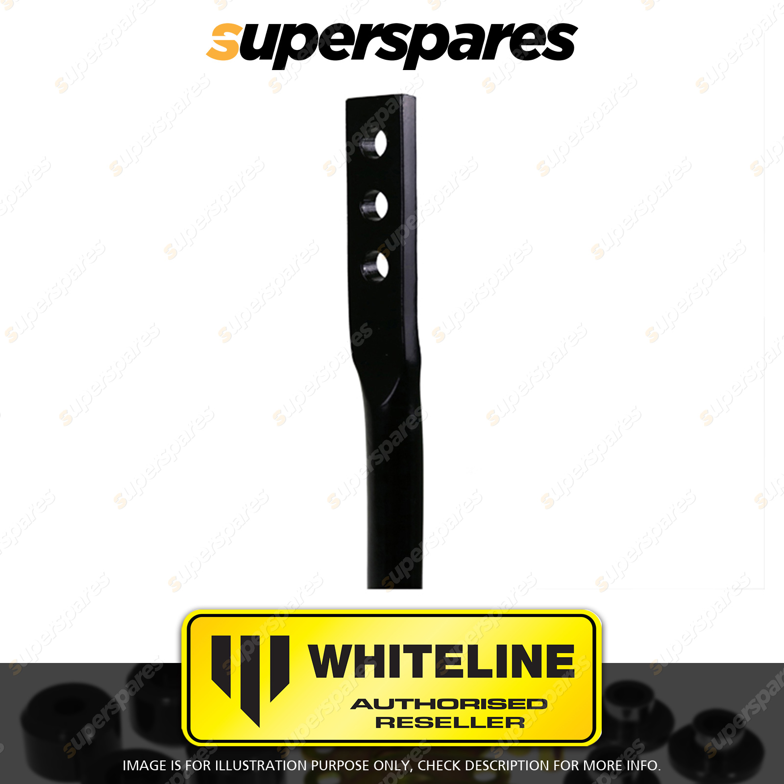 ![]() | Allow their stiffness to be altered by increasing or reducing the length of the lever arms. Whiteline Sway bars are manufactured using the finest grade Australian spring steel. They are powder coated and supplied with high performance synthetic elastomer mounting bushes in a DIY kit form, ready to simply bolt on. Whiteline adjustable sway bars offer from 2 up to 4 points of adjustment allowing in some cases 10 distinct stiffness settings for precise handling bias adjustment. |