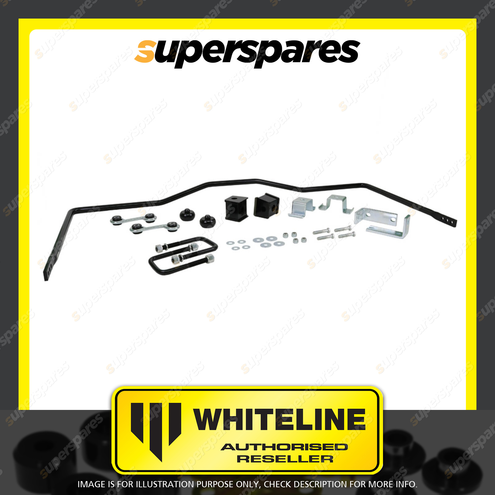 | Contents : Whiteline Rear Sway bar Warranty : 3 Year / 60,000Kms Kit Contents : 1 Sway Bar, 2 Links, 4 Bushings, 2 Saddles, 2 Brackets, 2 U-Bolts, 4 Bolts, 8 Washers, 4 Nuts, Install Guide, Grease | Kit Specifications : Diameter(mm) : 30mm |