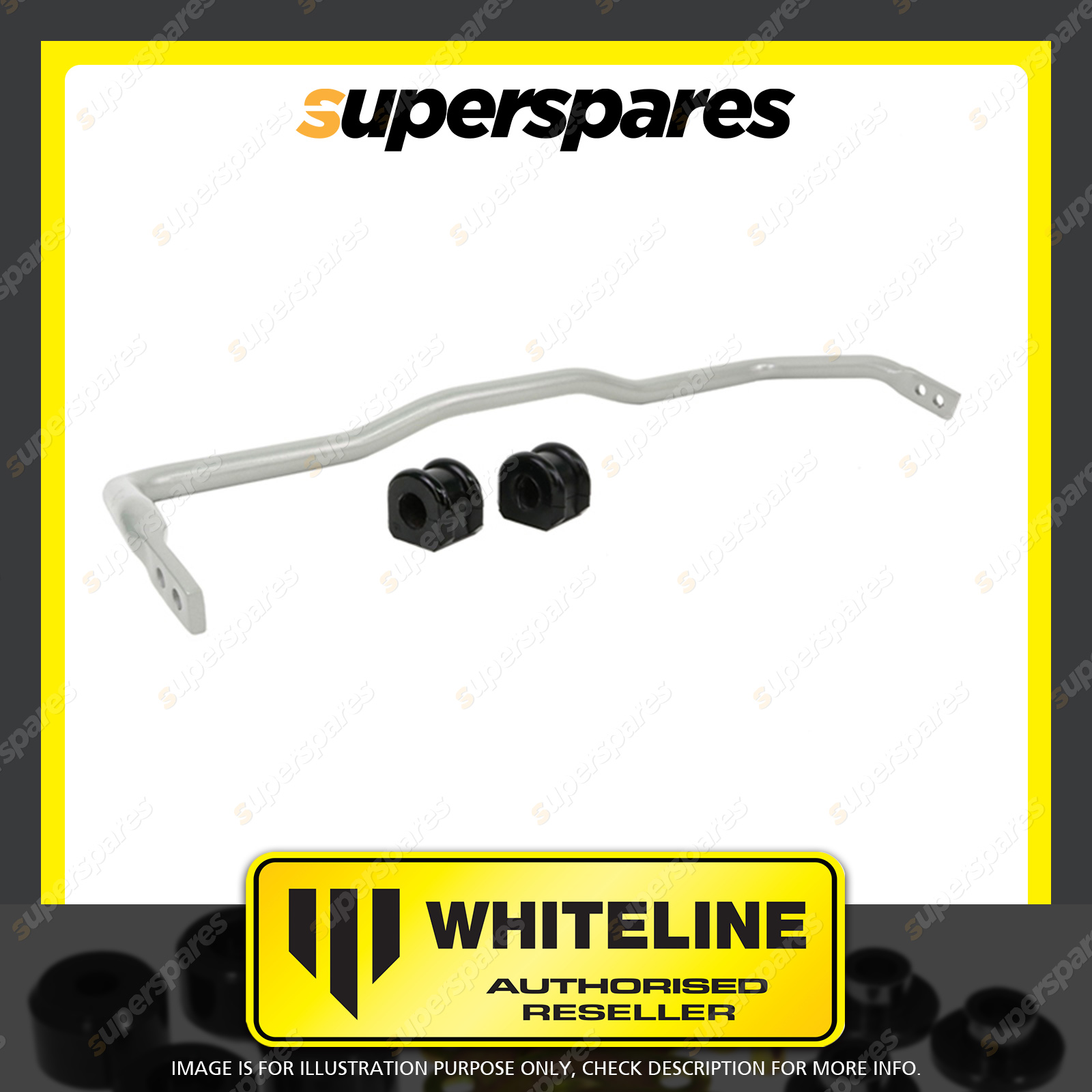 | Contents : Whiteline Rear Sway bar Warranty : 3 Year / 60,000Kms Kit Contents : 1 Sway Bar, 2 Bushings, Install Guide | Kit Specifications : Diameter(mm) : 22mm |