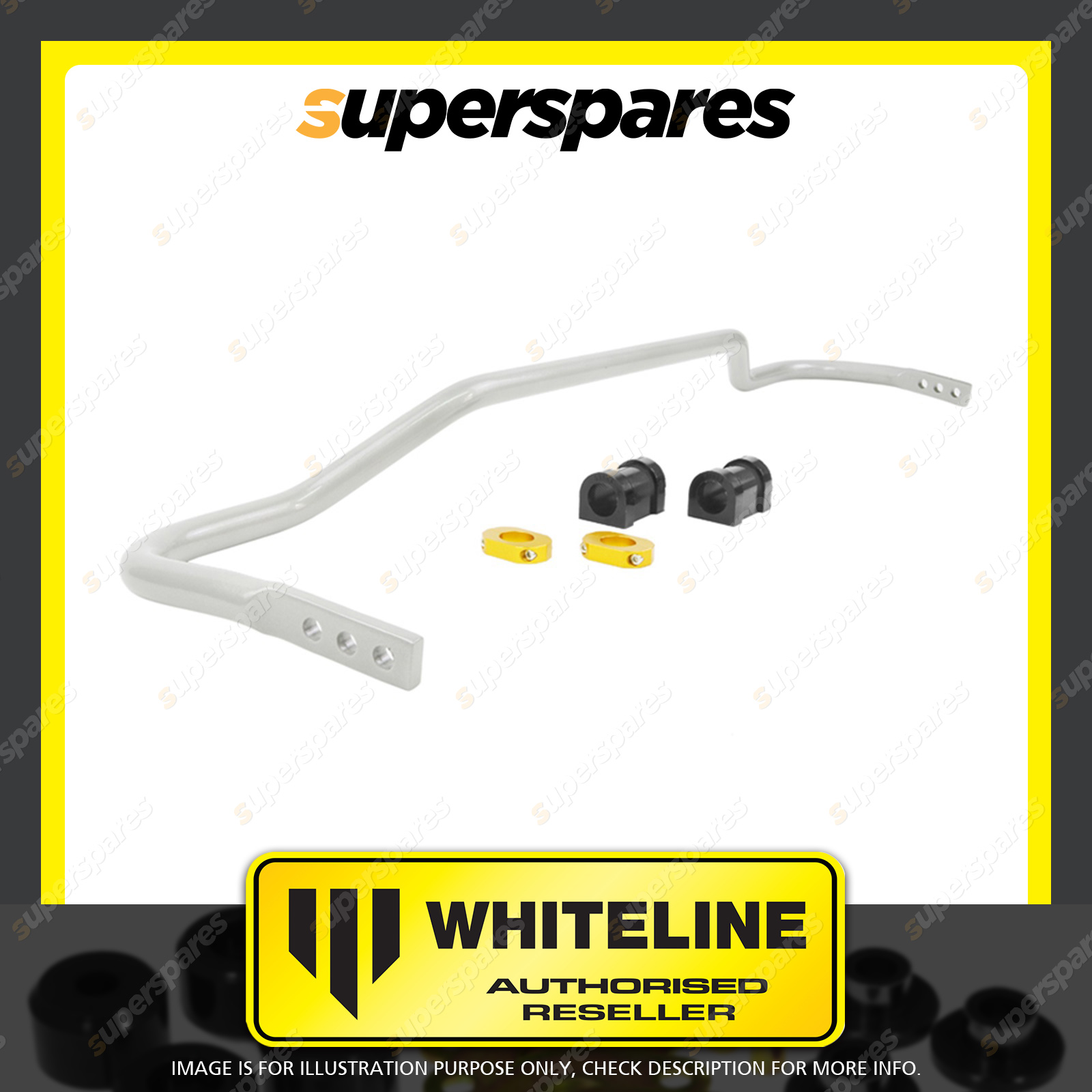 | Contents : Whiteline Rear Sway bar Warranty : 3 Year / 60,000Kms Kit Contents : 1 Sway Bar, 2 Bushings, 2 Lateral Locks, Install Guide, Grease | Kit Specifications : Diameter(mm) : 22mm |