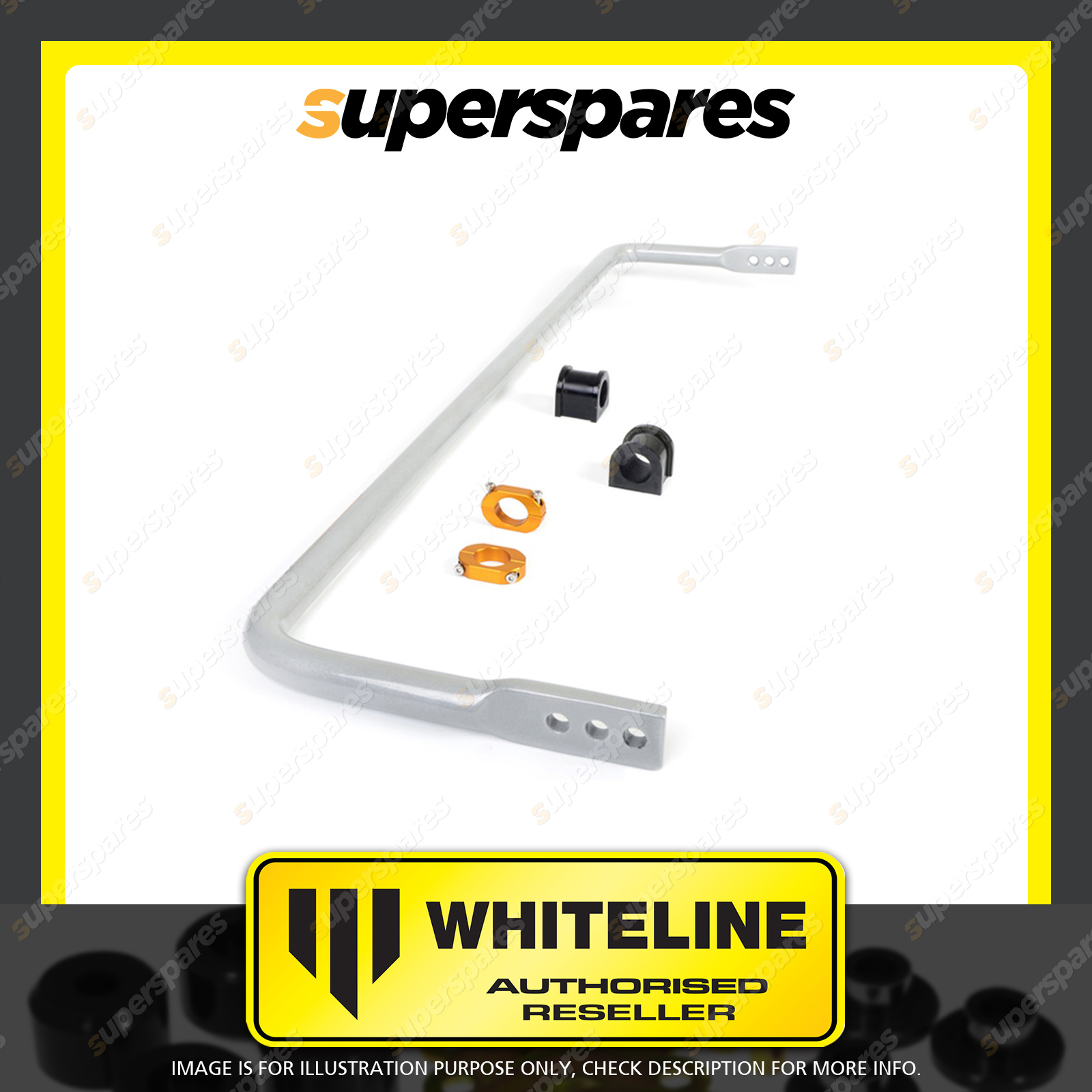 | Contents : Whiteline Rear Sway bar Warranty : 3 Year / 60,000Kms Kit Contents : 1 Sway Bar, 2 Bushings, 2 Lateral Locks, Install Guide, Grease | Kit Specifications : Diameter(mm) : 24mm |