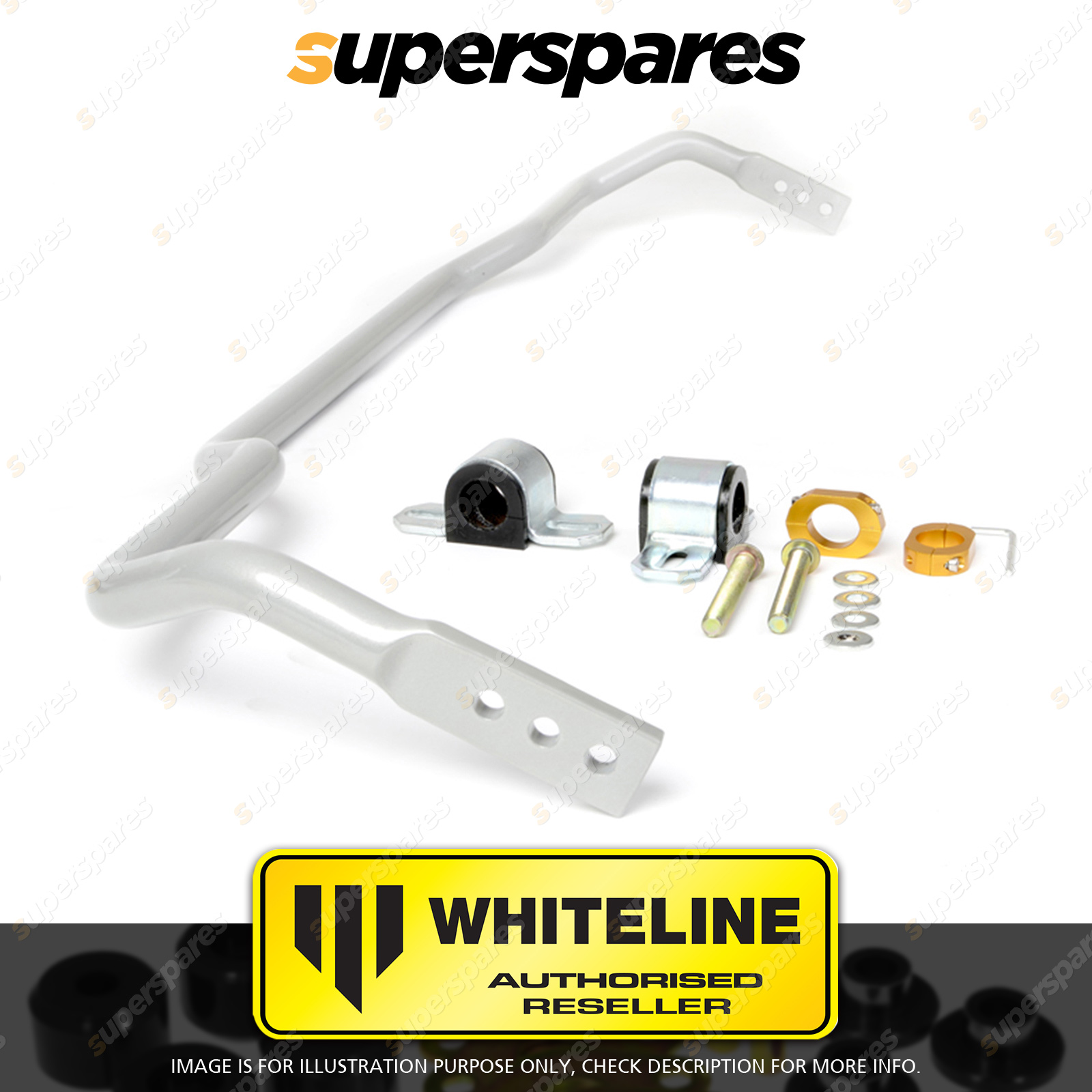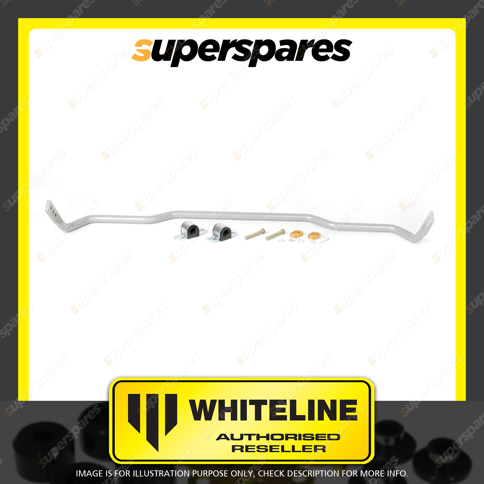 | Contents : Whiteline Rear Sway bar Warranty : 3 Year / 60,000Kms Kit Contents : 1 Sway Bar, 2 Bushings, 2 Saddles, 2 Lateral Locks, 2 Bolts, 4 Washers, Install Guide | Kit Specifications : Diameter(mm) : 24mm |