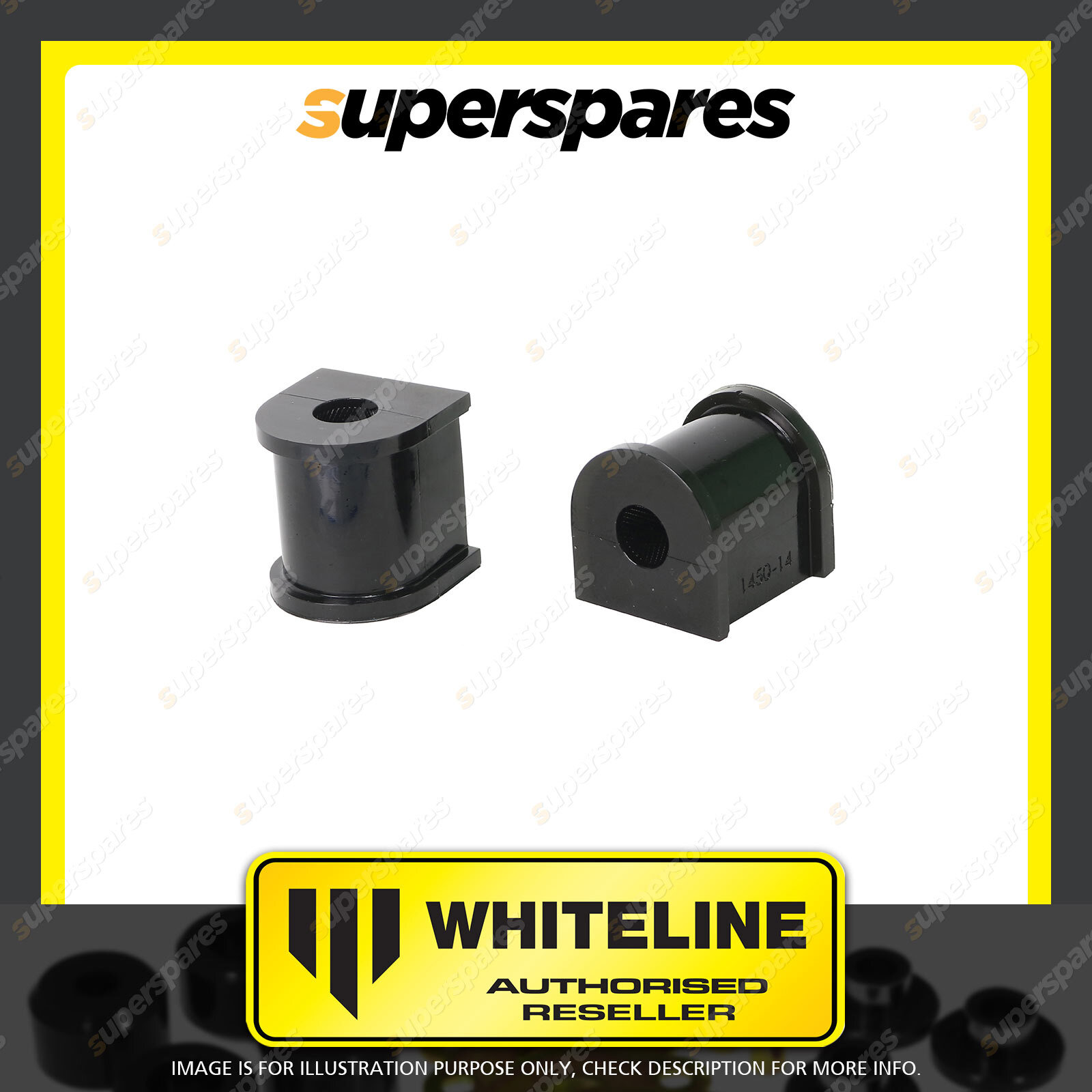 Contents : Whiteline Sway Bar Mount - Bushing Kit 14mm Position : Rear Warranty : Lifetime Kit Contents : 2 Bushings |