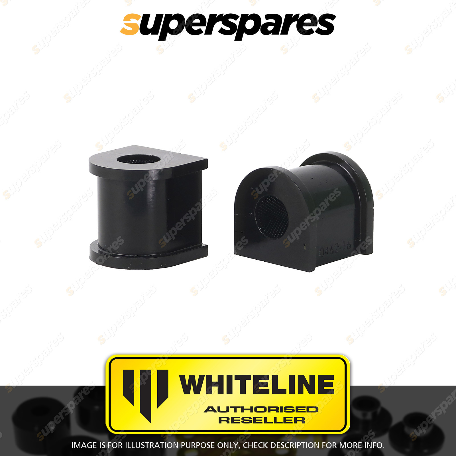 Contents : Whiteline Sway Bar Mount - Bushing Kit 16mm Position : Rear Warranty : Lifetime Kit Contents : 2 Bushings |