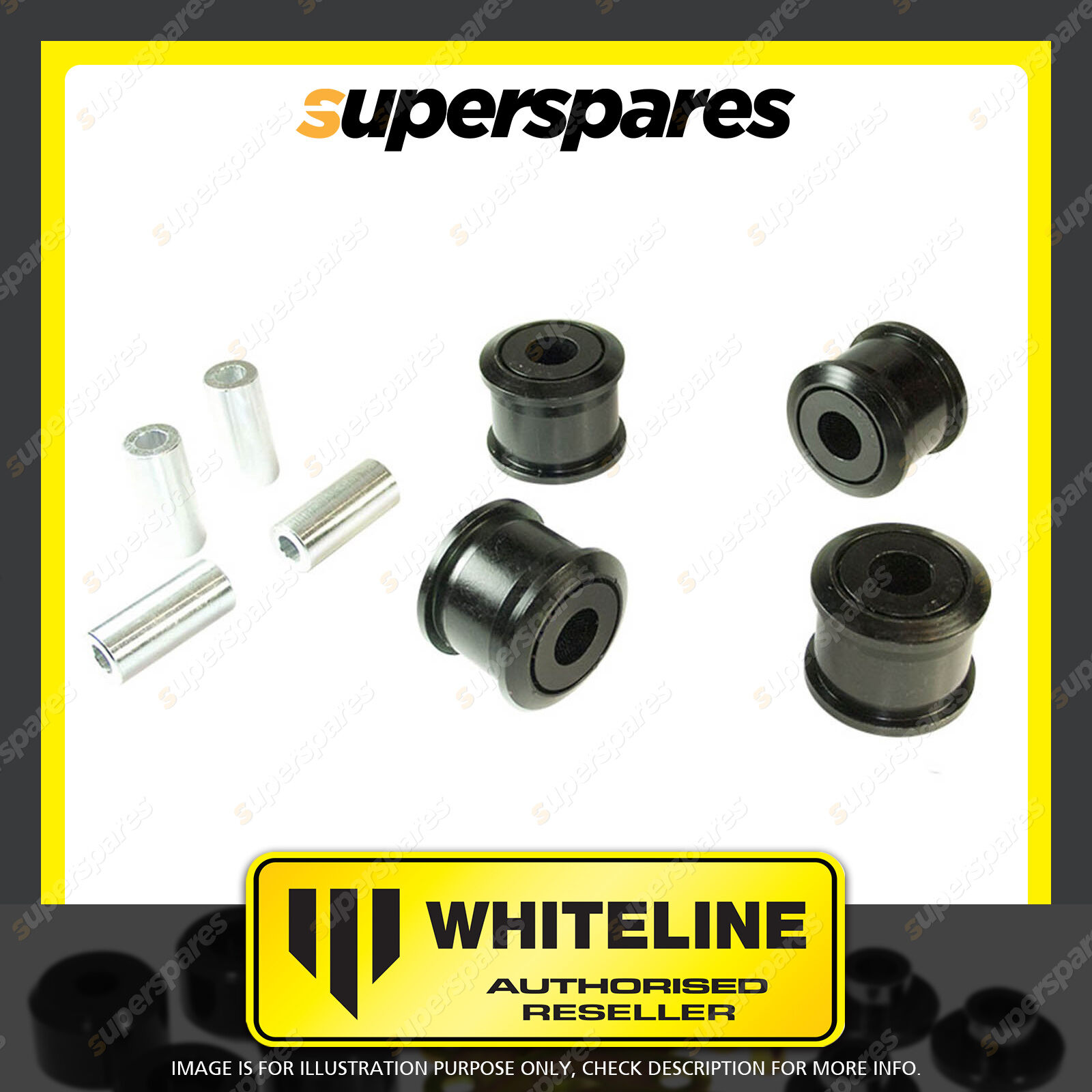 | Contents : Whiteline Rear Trailing Arm Lower - Bushing Kit Warranty : 3 Year / 60,000Kms Kit Contents : 4 Bushings, 4 Tubes |