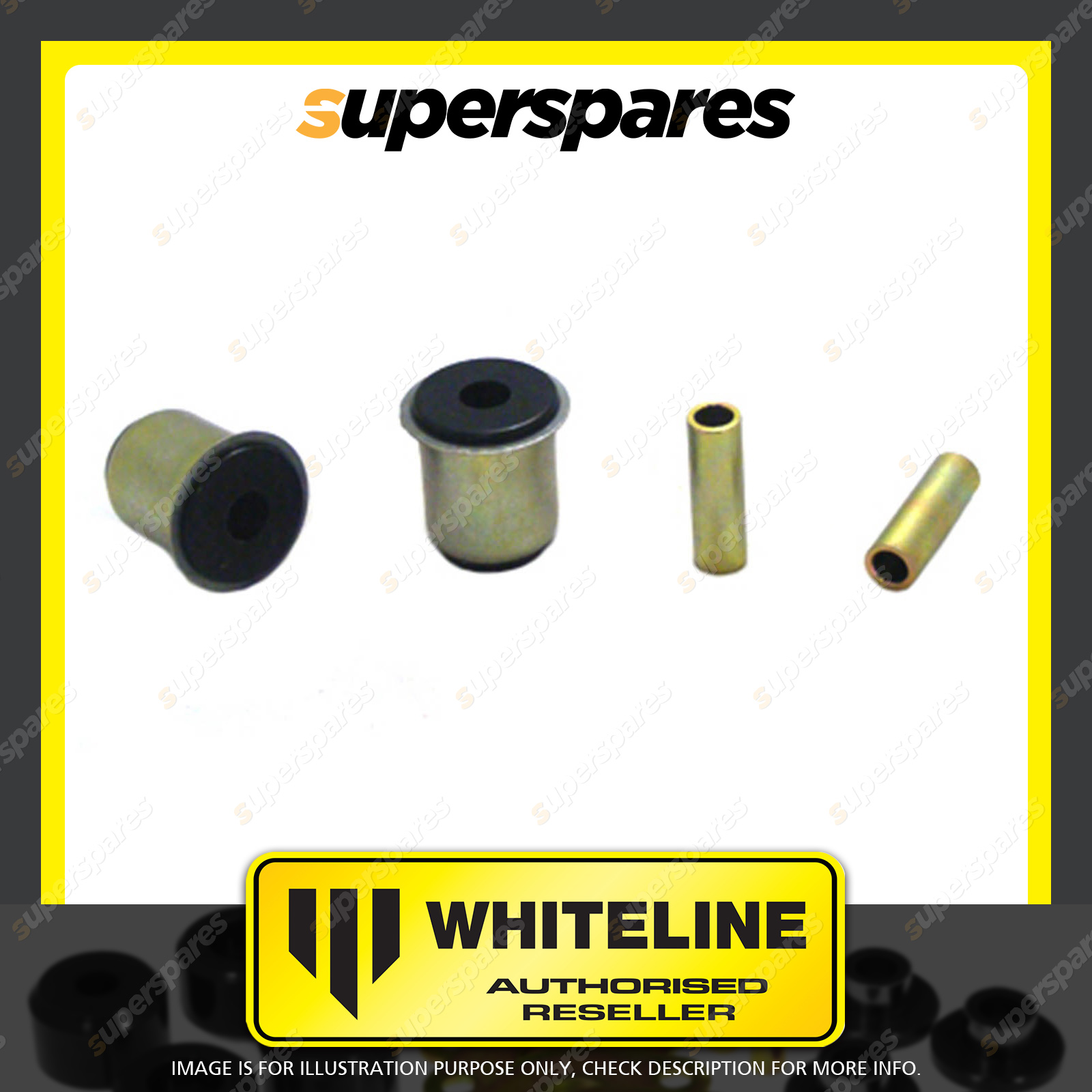 Contents : Whiteline Rear Control arm - lower inner bushing Warranty : 3 Year / 60,000Kms Kit Contents : 2 Shell Bushings, 2 Tubes, Grease |