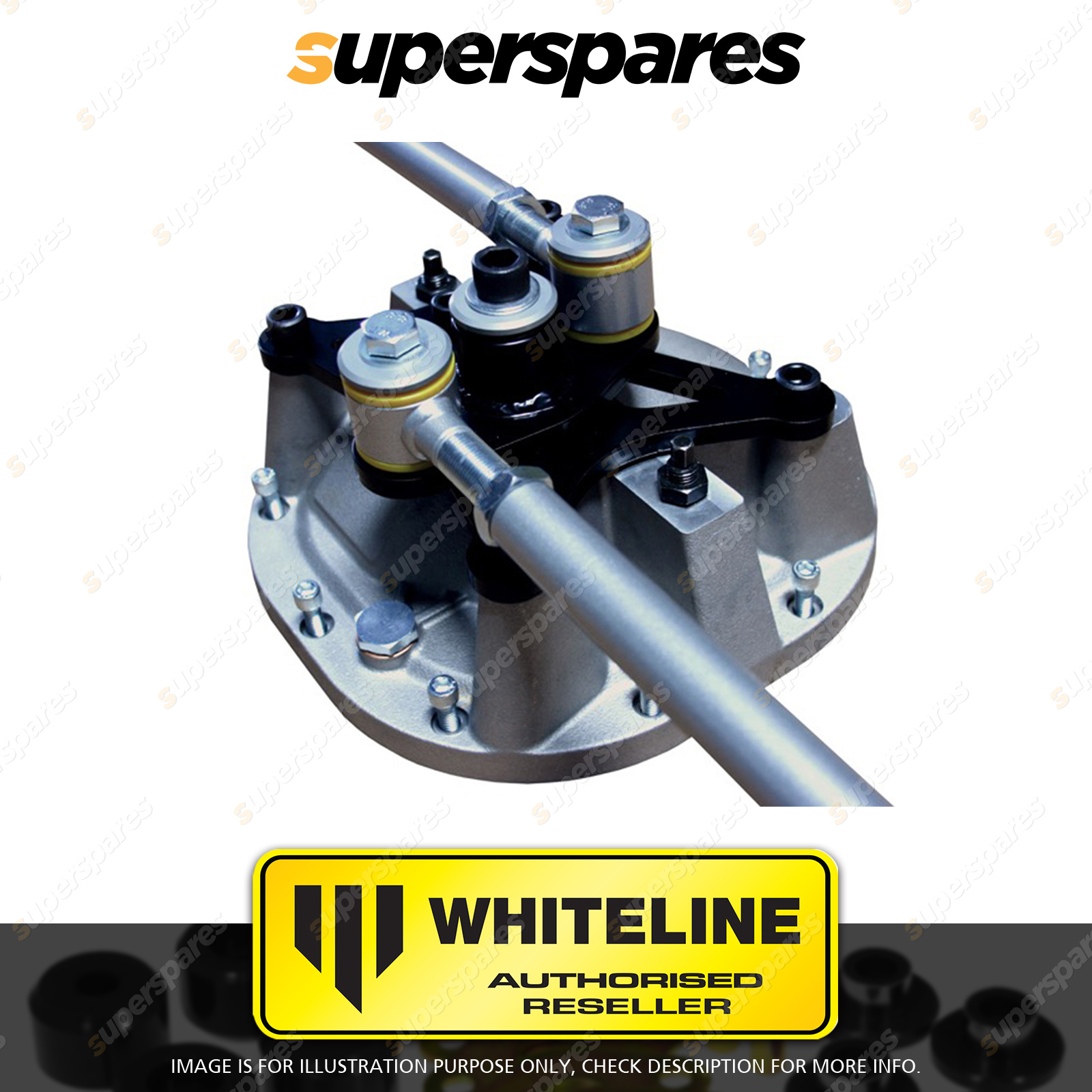 Whiteline Watts Link Creates even lateral transfer featuring engineered differential cover with mounting plate design for even stress across mounting points. Roll center adjustable through diff cover and 4130 Chromalloy adjustable arms. Integrated taps in differential cover for optional GT500 differential cooler. Features engineered synthetic elastomer which reduce noise, vibration and rigidity. 100% bolt on, no welding required! | |