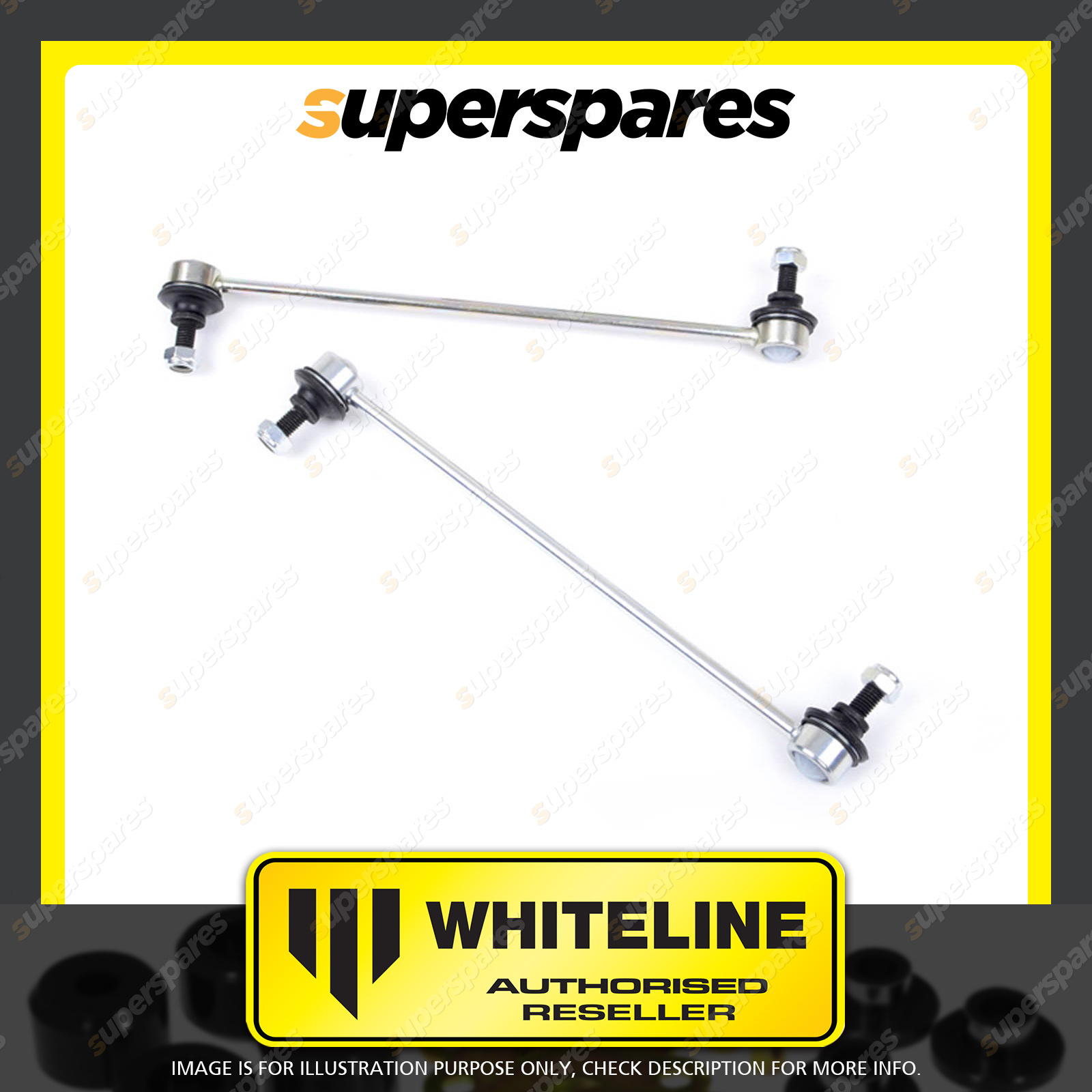 ![]() | Whiteline adjustable sway bar link Performance sway bar links utilising a heavy duty steel ball joint ends that adjust & rotate to any angular combination. Eliminate sway bar preload via the light weight aluminium bodies provide 25mm centre to centre length adjustment. Whiteline Lateral Locks The locks are easily installed on car. They are mounted directly next to the sway bar mounting points and prevent shifting or sideways movement of the sway bar under lateral (cornering loads). This results in improved sway bar effectiveness whilst preventing fouling of the sway bar on nearby chassis and steering components |