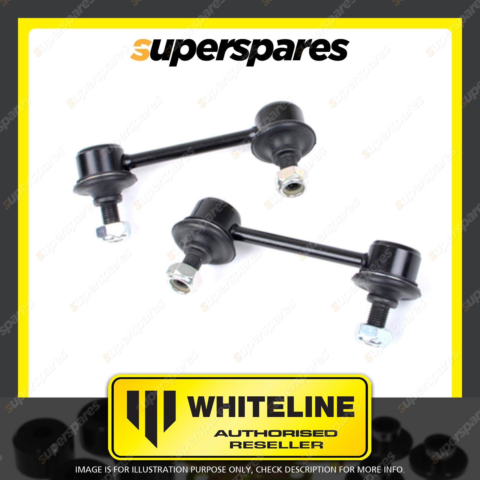 ![]() | Whiteline adjustable sway bar link Performance sway bar links utilising a heavy duty steel ball joint ends that adjust & rotate to any angular combination. Eliminate sway bar preload via the light weight aluminium bodies provide 25mm centre to centre length adjustment. Whiteline Lateral Locks The locks are easily installed on car. They are mounted directly next to the sway bar mounting points and prevent shifting or sideways movement of the sway bar under lateral (cornering loads). This results in improved sway bar effectiveness whilst preventing fouling of the sway bar on nearby chassis and steering components |