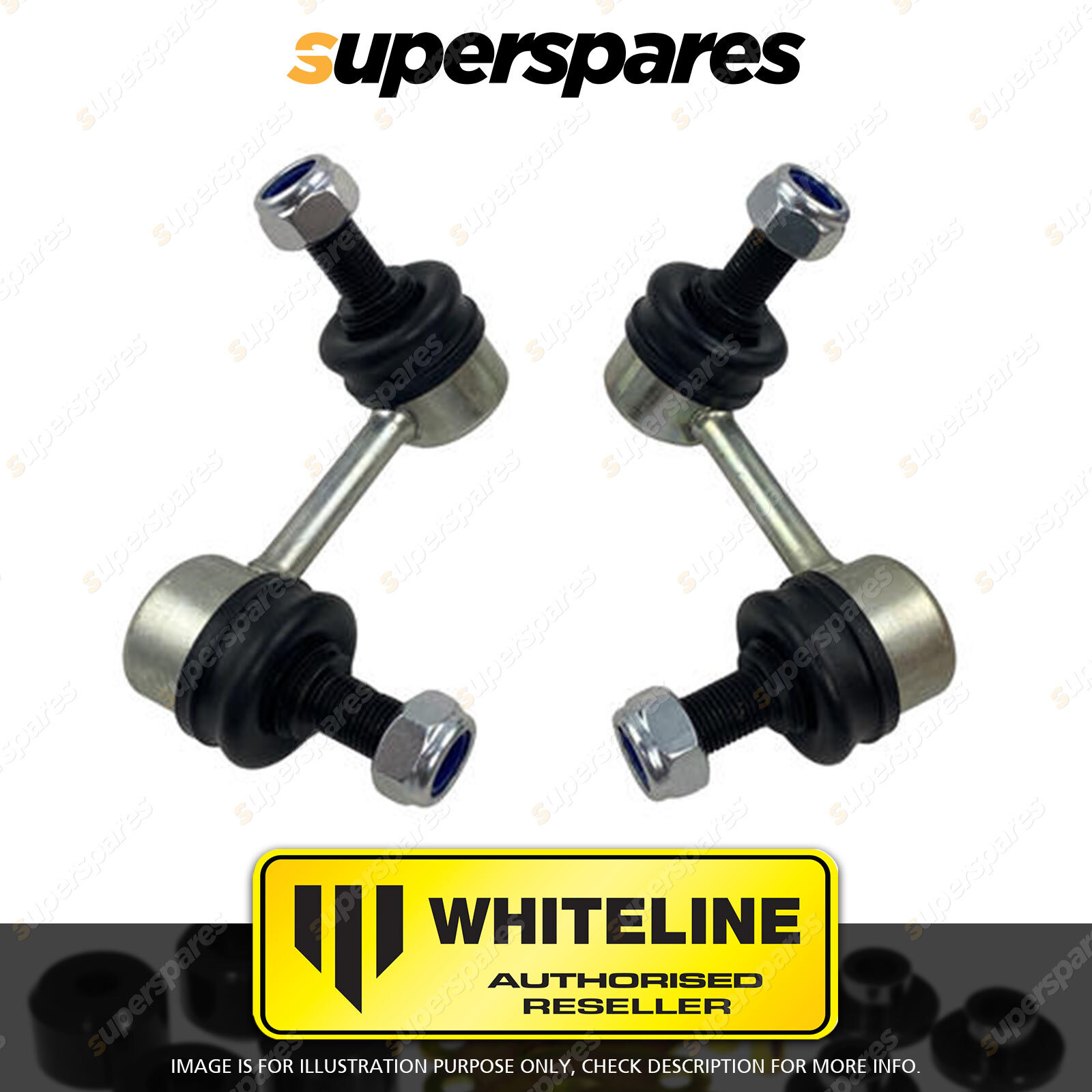 Whiteline adjustable sway bar link Performance sway bar links utilising a heavy duty steel ball joint ends that adjust & rotate to any angular combination. Eliminate sway bar preload via the light weight aluminium bodies provide 25mm centre to centre length adjustment. Whiteline Lateral Locks The locks are easily installed on car. They are mounted directly next to the sway bar mounting points and prevent shifting or sideways movement of the sway bar under lateral (cornering loads). This results in improved sway bar effectiveness whilst preventing fouling of the sway bar on nearby chassis and steering components |