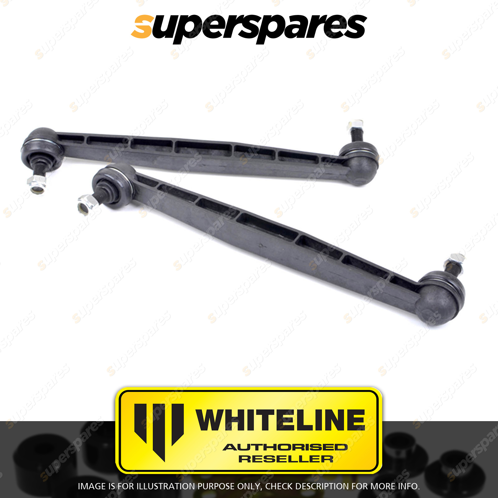![]() | Whiteline adjustable sway bar link Performance sway bar links utilising a heavy duty steel ball joint ends that adjust & rotate to any angular combination. Eliminate sway bar preload via the light weight aluminium bodies provide 25mm centre to centre length adjustment. Whiteline Lateral Locks The locks are easily installed on car. They are mounted directly next to the sway bar mounting points and prevent shifting or sideways movement of the sway bar under lateral (cornering loads). This results in improved sway bar effectiveness whilst preventing fouling of the sway bar on nearby chassis and steering components |