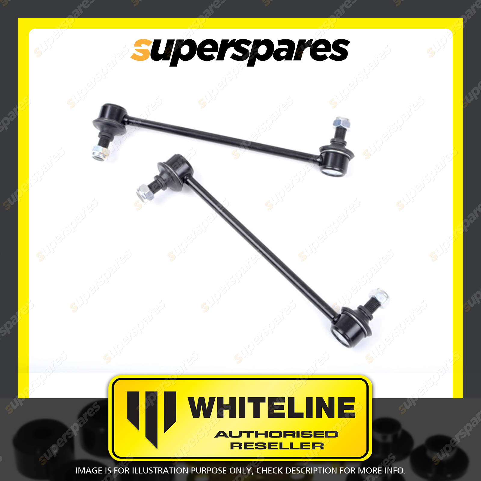 ![]() | Whiteline adjustable sway bar link Performance sway bar links utilising a heavy duty steel ball joint ends that adjust & rotate to any angular combination. Eliminate sway bar preload via the light weight aluminium bodies provide 25mm centre to centre length adjustment. Whiteline Lateral Locks The locks are easily installed on car. They are mounted directly next to the sway bar mounting points and prevent shifting or sideways movement of the sway bar under lateral (cornering loads). This results in improved sway bar effectiveness whilst preventing fouling of the sway bar on nearby chassis and steering components |