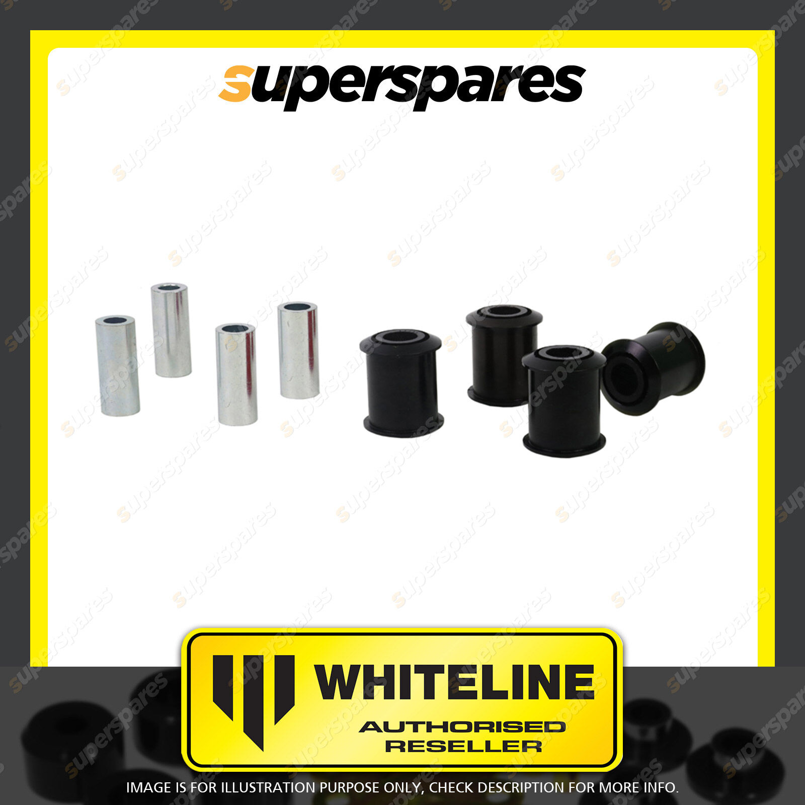 | Contents : Whiteline Trailing Arm - Lower Bushing Warranty : 3 Year / 60,000Kms Kit Contents : 4 Bushings, 4 Tubes, Install Guide, Grease |