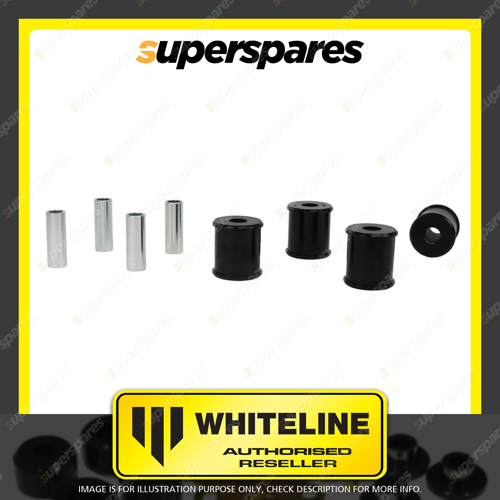 | Contents : Whiteline Rear Trailing arm - lower bushing Warranty : 3 Year / 60,000Kms Kit Contents : 4 Bushings, 4 Tubes, Grease |