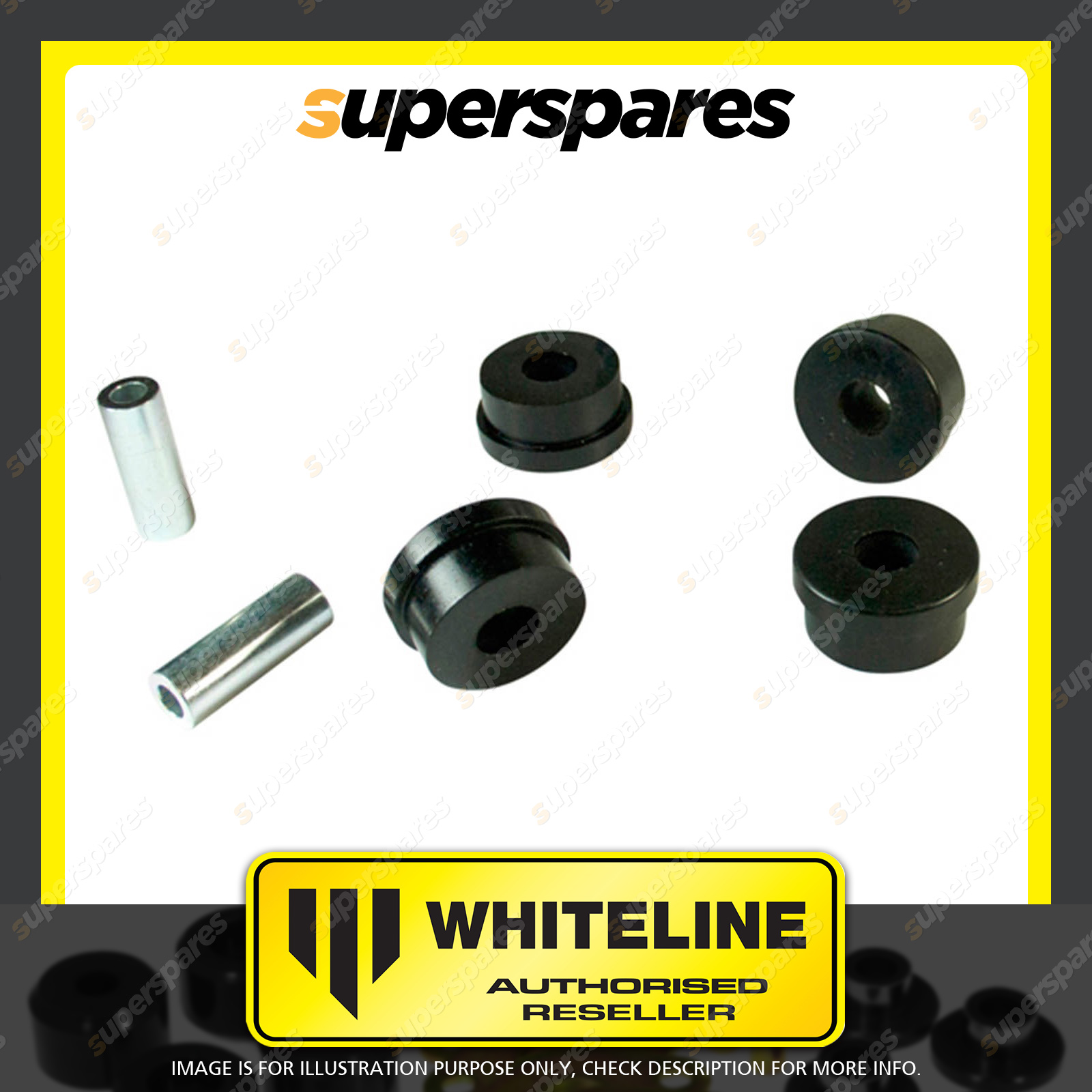 | Contents : Whiteline Rear Trailing arm - lower Front bushing Warranty : 3 Year / 60,000Kms Kit Contents : 4 Bushings, 2 Tubes, Grease |