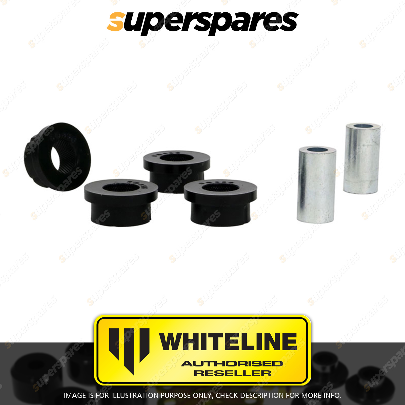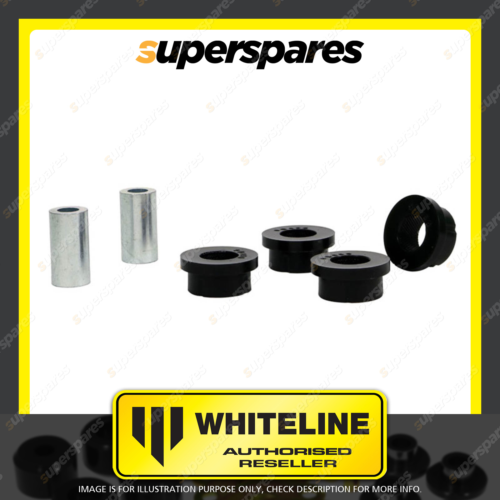 | Contents : Whiteline Rear Trailing arm - lower Rear bushing Warranty : 3 Year / 60,000Kms Kit Contents : 4 Bushings, 2 Tubes, Install Guide, Grease | Kit Specifications :