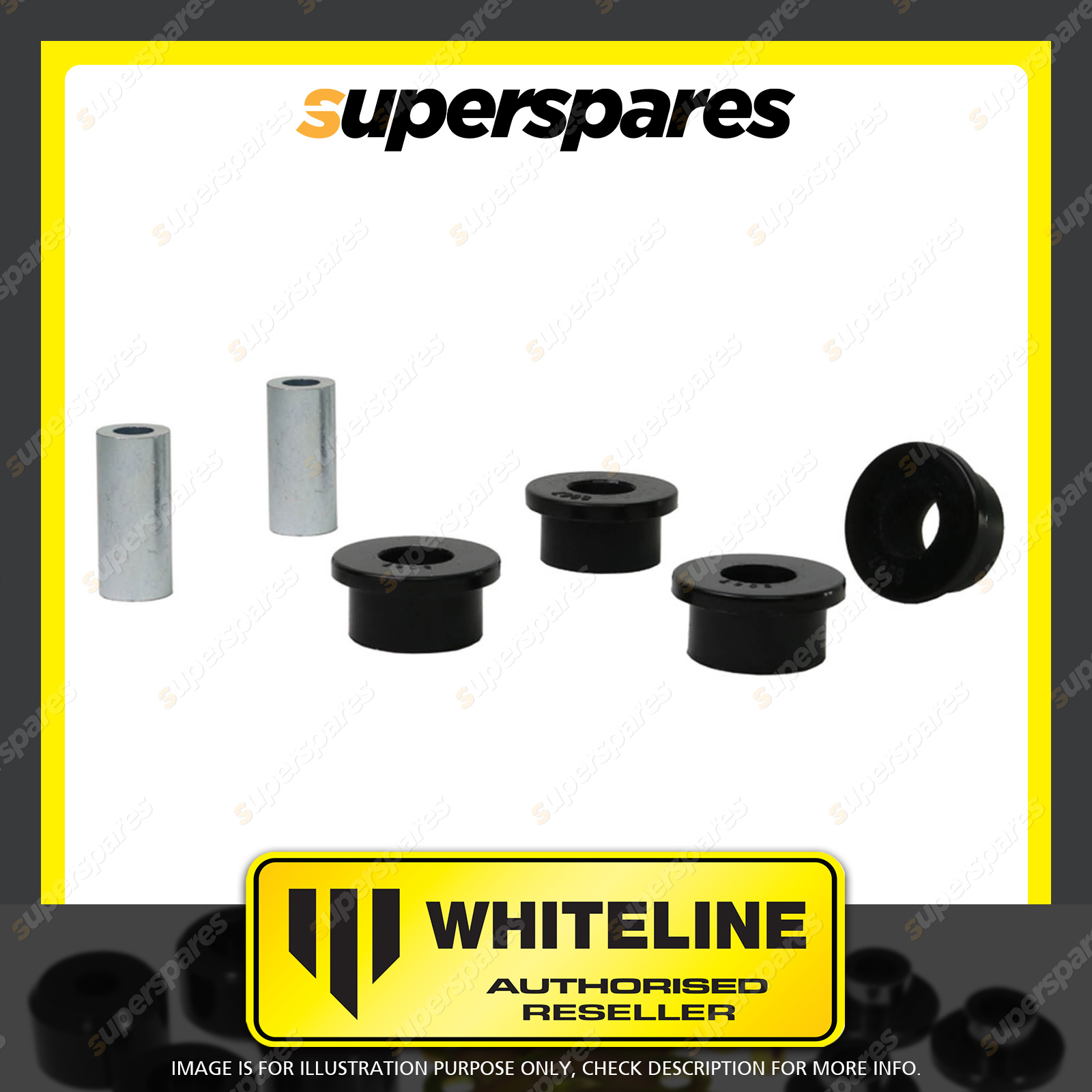 | Contents : Whiteline Rear Trailing arm - lower Rear bushing Warranty : 3 Year / 60,000Kms Kit Contents : 4 Bushings, 2 Tubes, Grease |