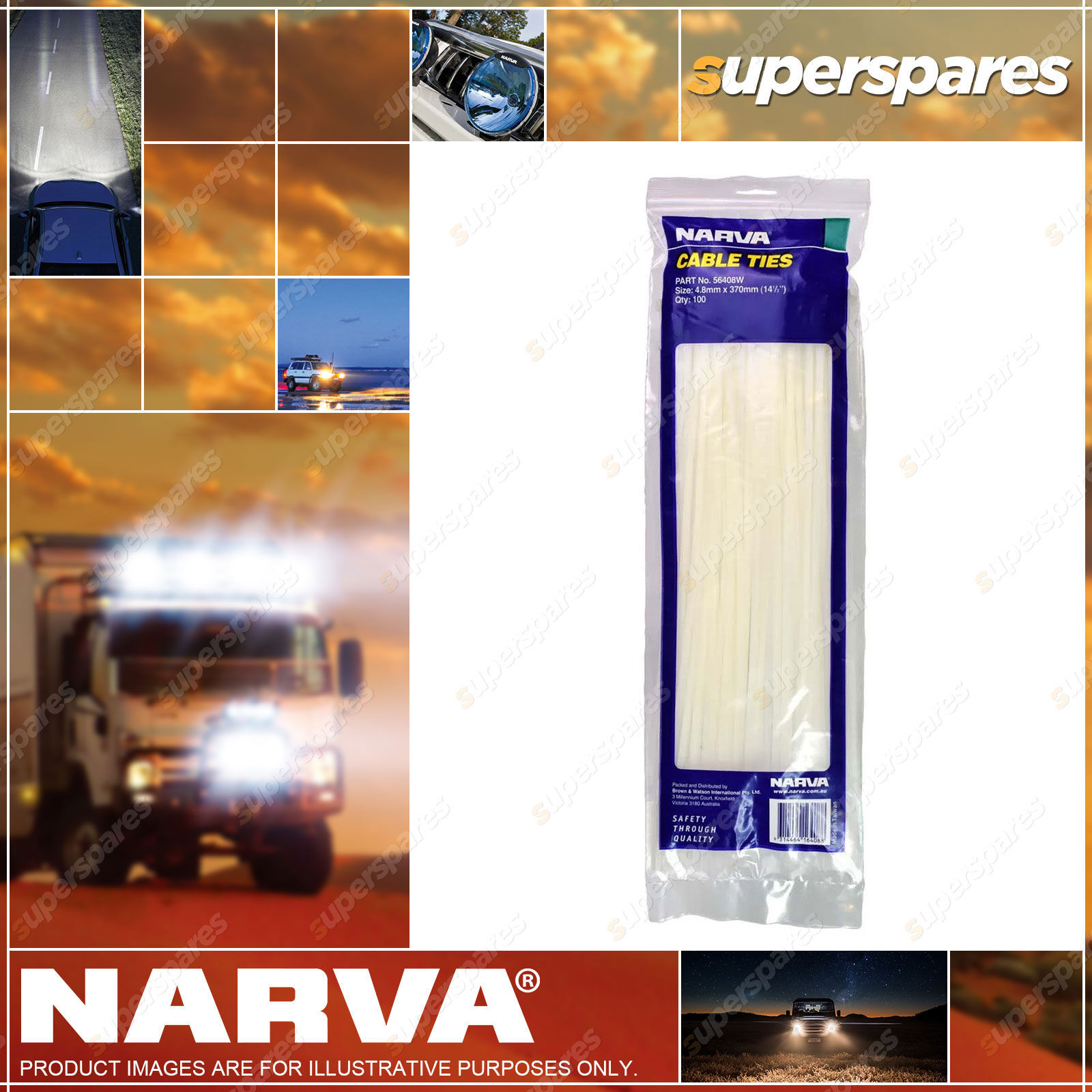 Content :Narva Brand Cable Tie White 4.8 x 370mm 14.5 inch 100 Pack Bundle Diameter 106mm